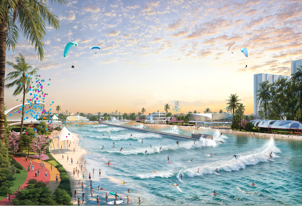 ➤广州国际冲浪运动天地项目总投资约8亿元,构建集冲浪、亲子漂流、运动康复于一体的“一站式”水上运动社交目的地,打造华南顶级冲浪基地。