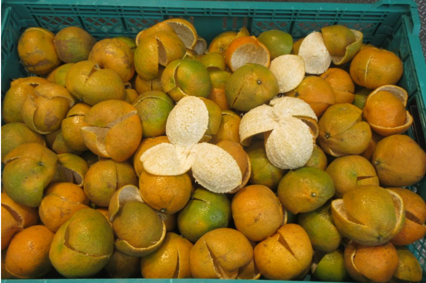果实采摘、清洗后,人们熟练地从顶部下刀,仅需两刀或三刀,就能均匀地切出三瓣花状、蒂部相连的果皮,果肉不适合食用,一般做肥料或者饲料。据说,曾有外地游客来到新会,看到果园外边堆满去皮的柑子,一问居然不要钱,在当地人诧异的目光里装了满满一袋,一吃才发现原来又酸又苦。
