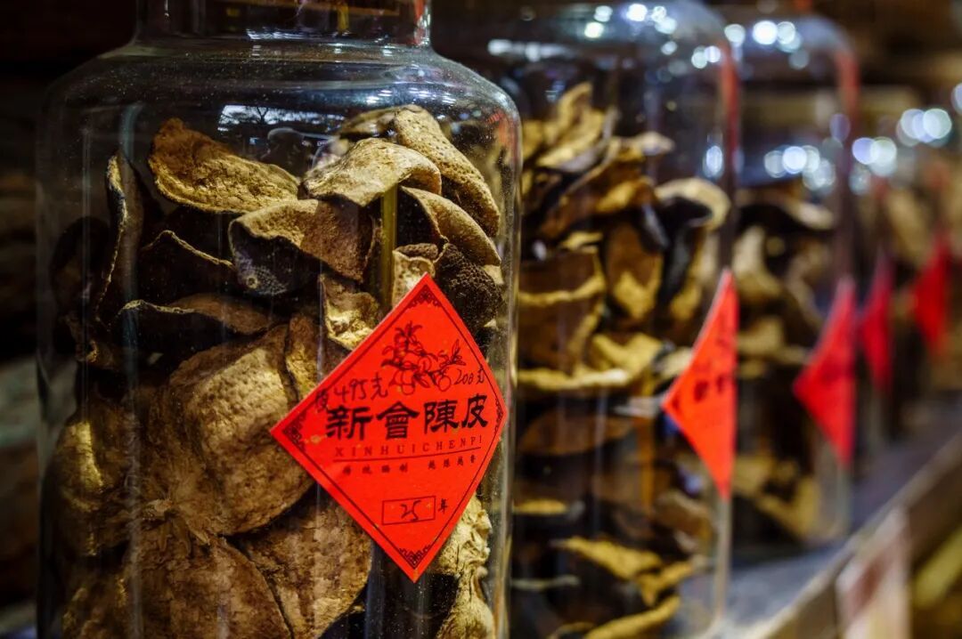 果皮变干后,还不算是真正的陈皮,要将它们放在透气性好的容器里,储存在阴凉干燥环境中,每年定期翻晒,经过3年以上的陈化过程才能称为陈皮。这一系列复杂的工序和所花费的时间,无形地提升了陈皮的成本。