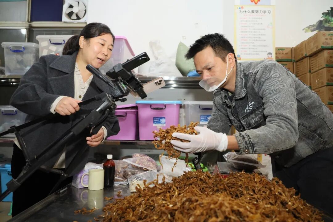看到村里留守老人种植的农副产品销路不畅,夫妻俩毅然扎进电商行业,对行动不便的老人,他们还定期上门收购农副产品。“刚开始啥也不懂,开抖店、做链接、开直播,都是一点点摸索。”胡选燕说,为了让顾客买得放心,他们售卖的排米粉、竹笋干、花生等都是零添加,选品、试用、包装每个环节都亲自把关。