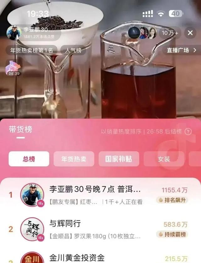 当晚,李亚鹏从18点50分开播至凌晨1点,6小时销售额高达1.62亿元,刷新了他仅一周前创造的带货纪录,稳居抖音年货榜榜首。