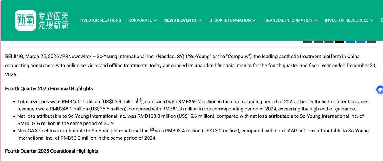 在经历了一场轰轰烈烈的线下转型后,新氧在上个月底交出了一份矛盾的答卷:公开信息显示,2025年第四季度,新氧实现总收入4.61亿元,同比增长25%,创下公司单季营收历史新高。2025年全年,新氧的总收入15.23亿元,同比增长3.87%。同时,2025年,线下诊所收入暴涨298.7%,门店数量快速增长。