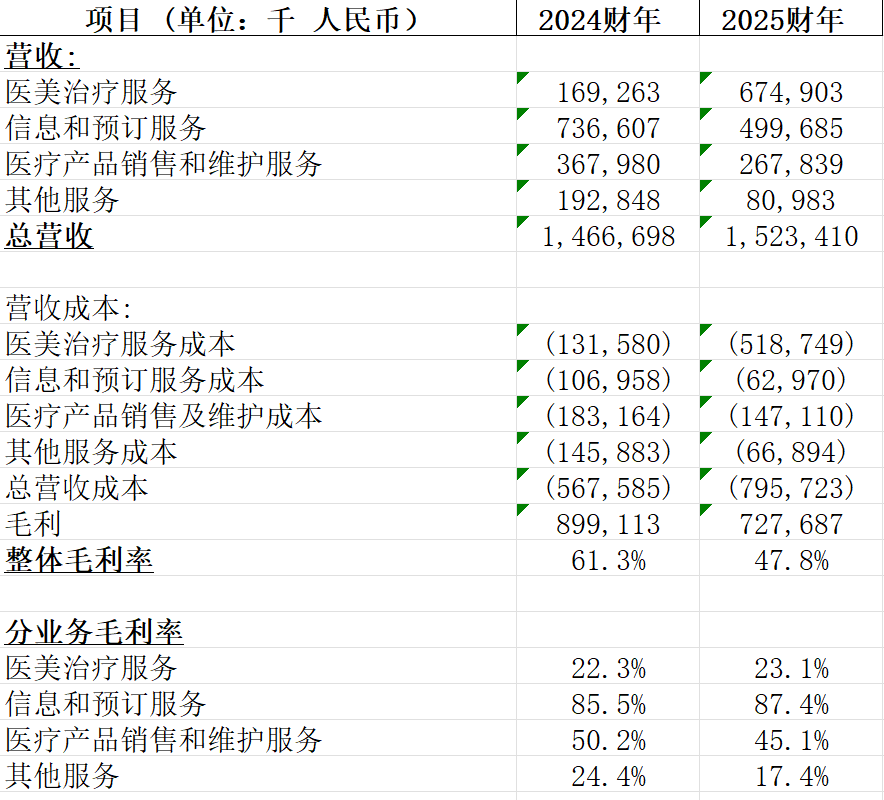 新氧起家于“内容社区+电商”模式,在早期垄断了医美领域的线上流量。然而,随着抖音、小红书等内容平台的崛起,以及阿里健康、美团等综合巨头的跨界布局,医美机构的广告预算被大量分流。这些新平台拥有更庞大的用户基数和更强的流量变现能力,新氧的线上流量优势被迅速瓦解,直接导致其核心的信息服务收入锐减。同时新氧平台上的价格过低,已经导致众多机构无法进行正常的履约服务,于是大部分机构陆续退出新氧平台,导致其原有的信息服务平台初步萎缩。